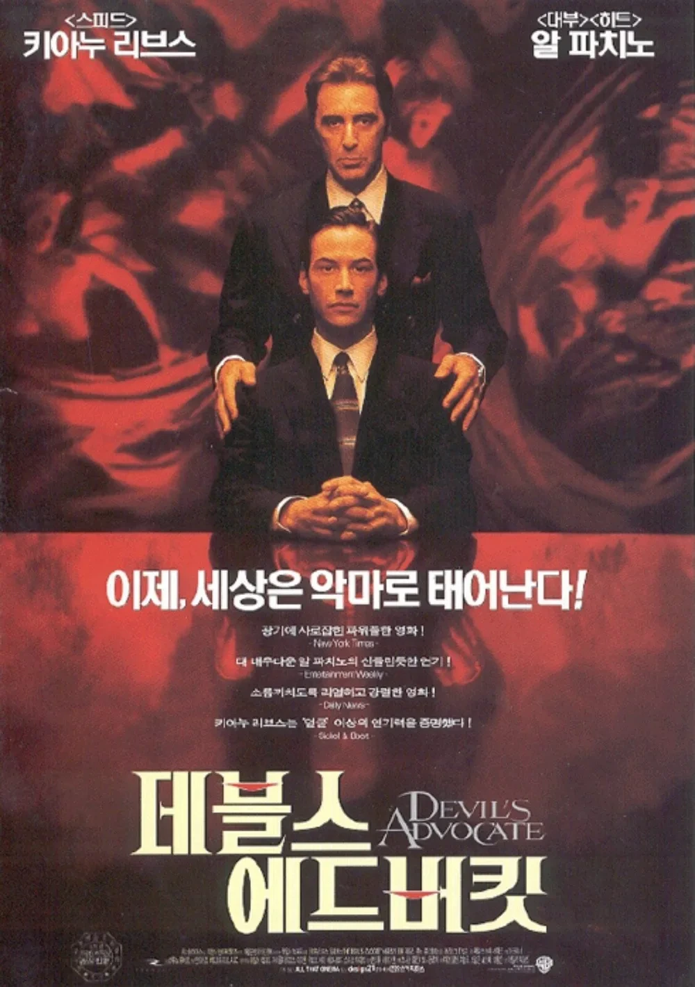 이 영화는 법정 드라마의 형식을 빌려 인간의 욕망과 악의 유혹을 탐구하며, 성공과 도덕성 사이의 갈등을 그립니다. "데블스 에드버킷"이라는 제목은 "악마의 변호사" 또는 "악마의 대변인"이라는 이중적 의미를 가지고 있습니다.